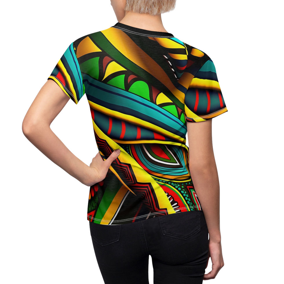 Beyond its aesthetic appeal, African print is a cultural symbol that connects people to their roots. It is proudly worn as a statement of identity, celebrating African heritage and uniting communities through shared traditions.Classic and comfortable choice, this high quality AOP t-shirt is appealing from every angle. Artist : Vannani Design Co.