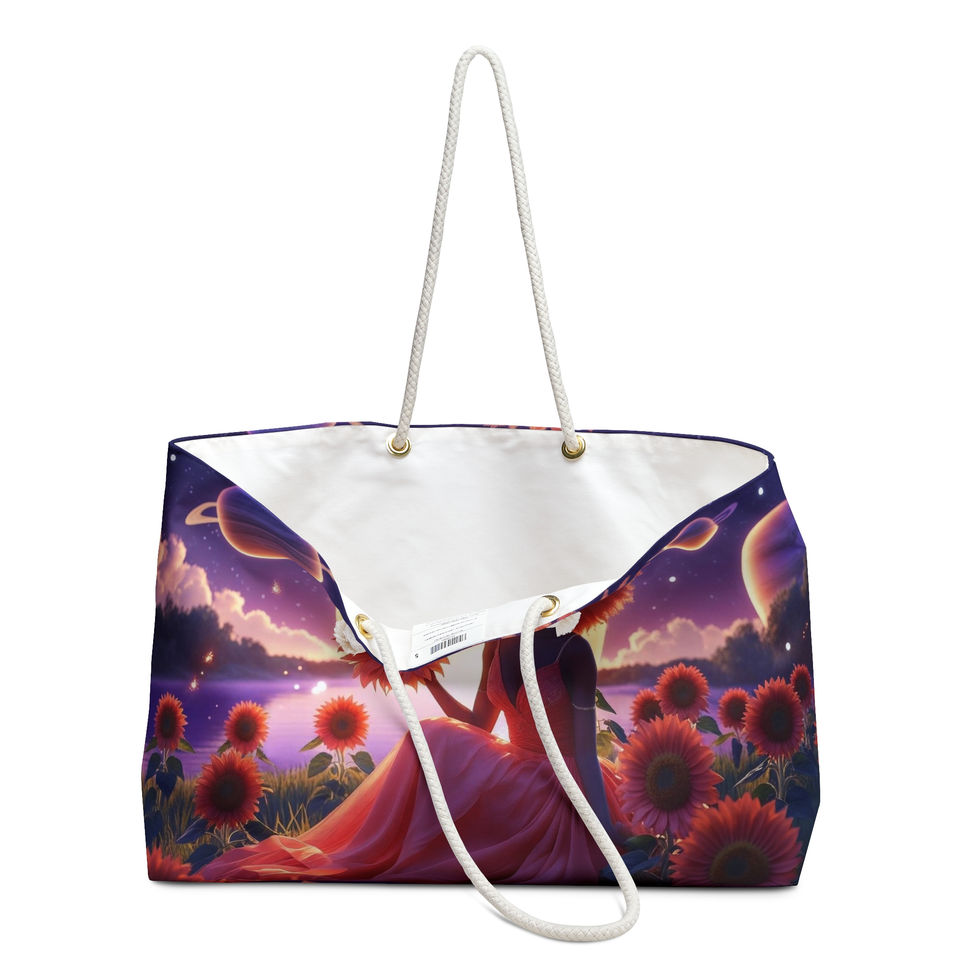 Elevate your travel experience with our stunning Weekender Bag, designed to combine style and functionality. The vibrant artwork features a serene scene full of sunflowers and celestial elements, making every trip feel like an escape to a whimsical world. Perfect for weekend getaways, gym trips, or as a chic everyday tote, this bag brings a touch of joy and creativity to your daily routine. Ideal for those who appreciate unique artistry, it also makes a thoughtful gift for birthdays, holidays, or any special occasion where heartfelt gestures matter. Whether you're heading to the beach or running errands, this bag adds flair to your adventures!